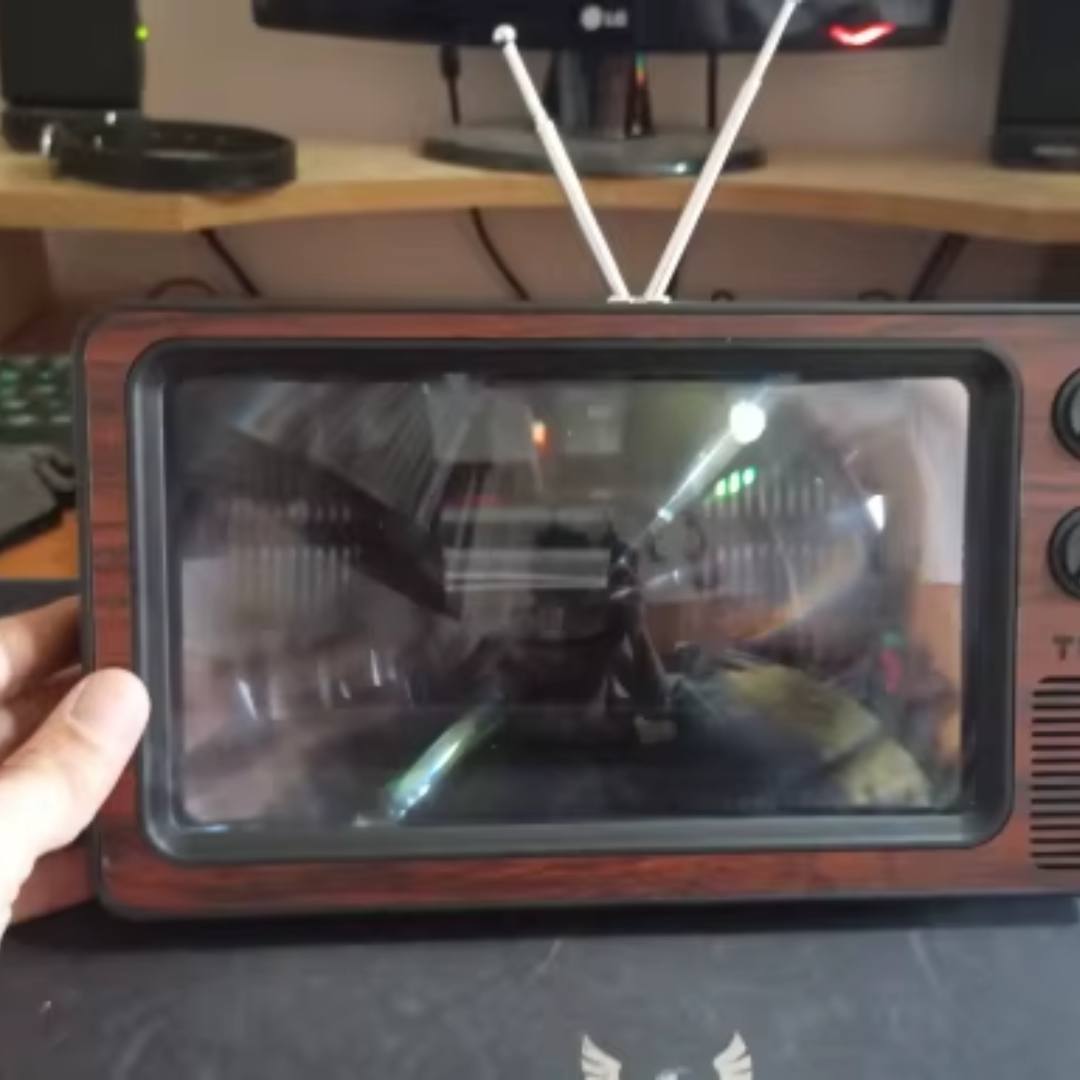 Este amplificador aumenta la pantalla 3 veces, ofrece imagen clara y sin reflejos, y su diseño retro tipo TV también mejora el sonido.